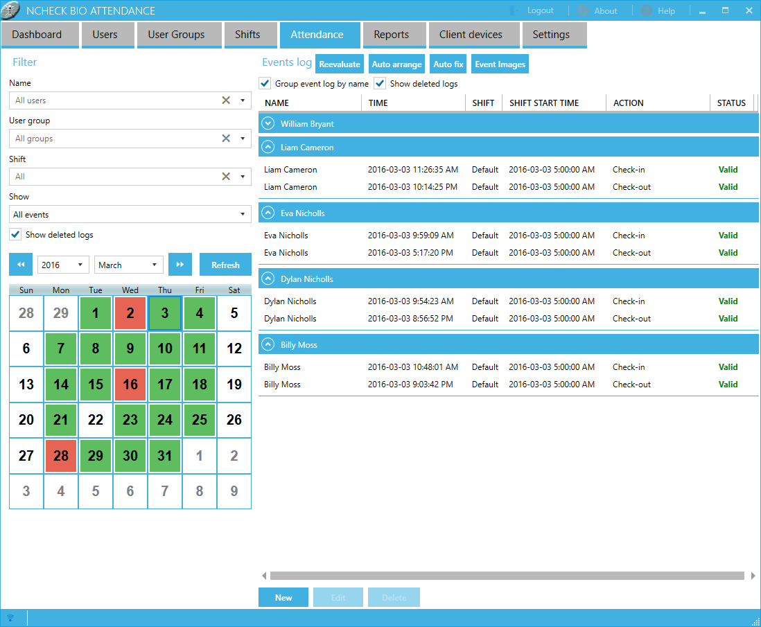 Web: attendance view