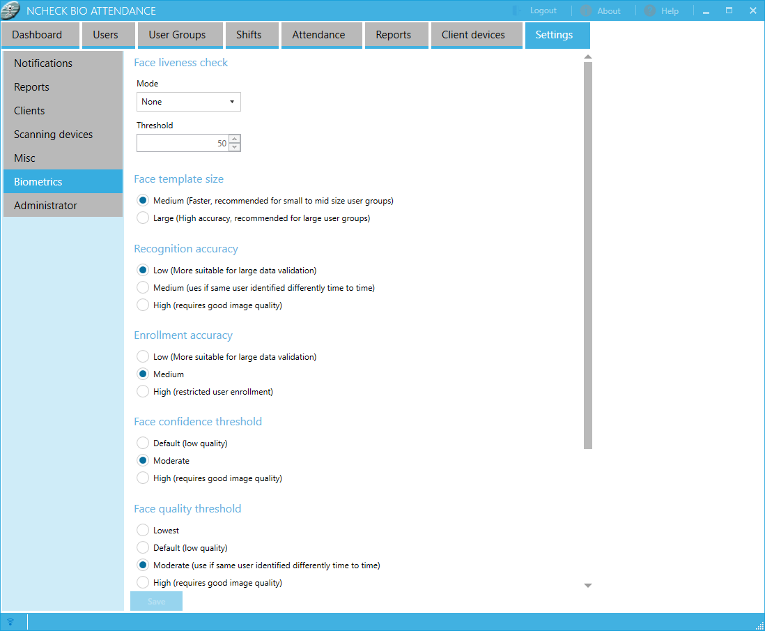 Biometrics settings