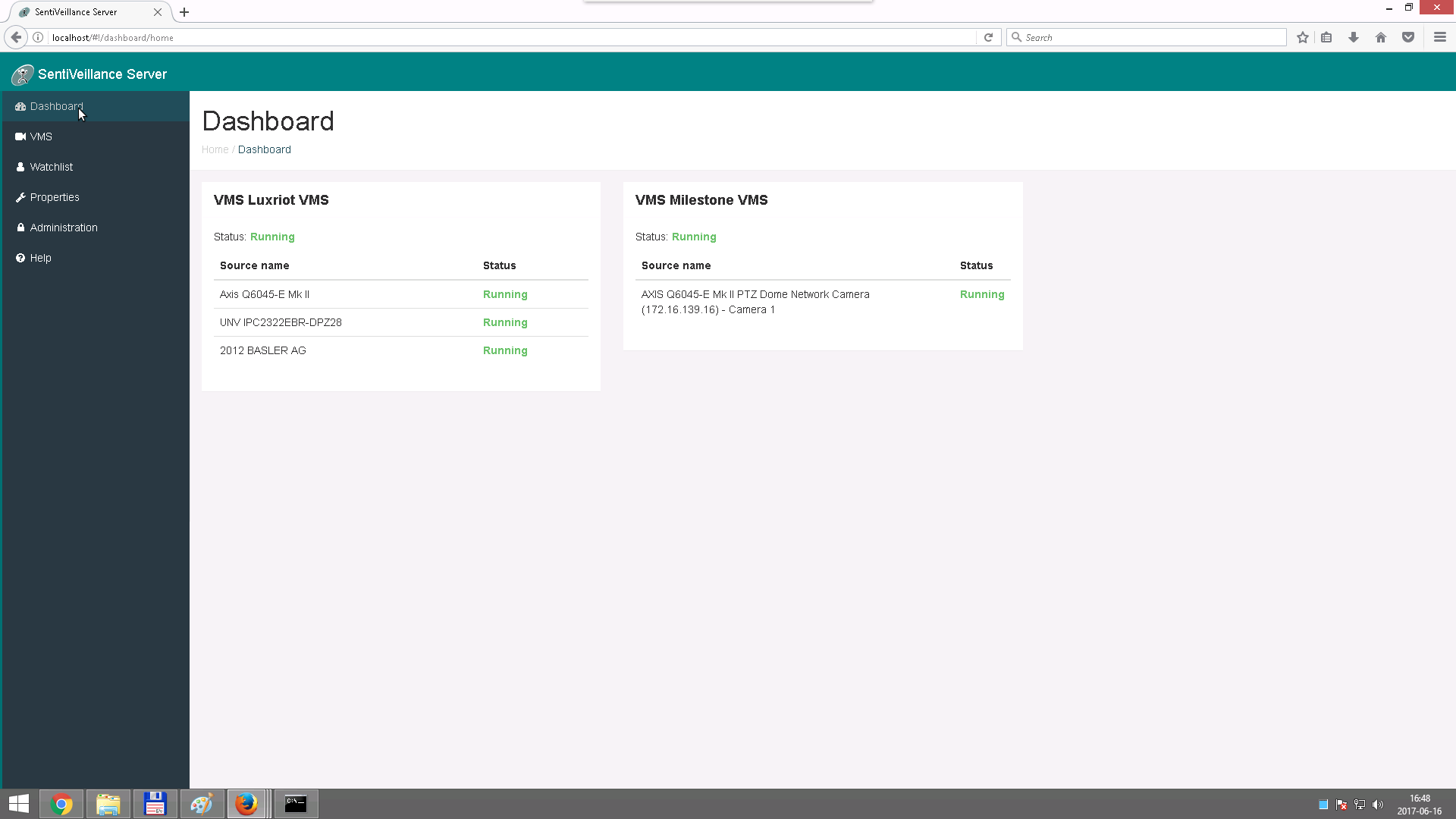 SentiVeillance Server dashboard