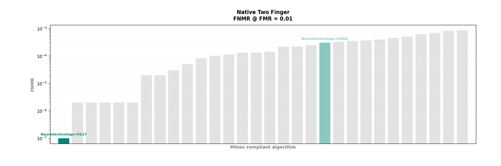 The Neurotechnology+0117 submission represents the most recent Neurotechnology's fingerprint template recognition algorithms designed for use in solutions based on PC or mobile platforms. The submission successfully passed the MINEX III validation in March 2026. The outstanding interoperability results for Neurotechnology's latest fingerprint template generation technology, as well as the top-ranked interoperability and native accuracy results for fingerprint recognition (generator and matcher) software, easily exceed any previous MINEX III submission.