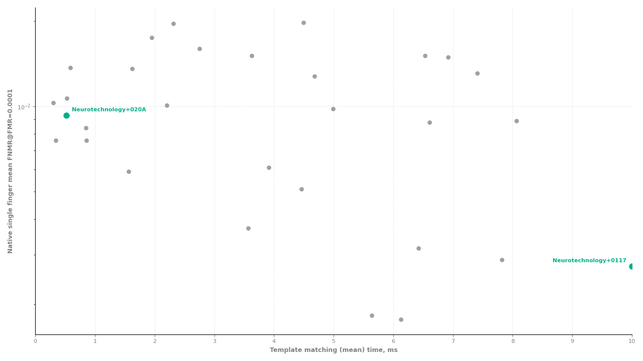 The Neurotechnology+0117 submission represents the most recent Neurotechnology's fingerprint template recognition algorithms designed for use in solutions based on PC or mobile platforms. The submission successfully passed the MINEX III validation in March 2026. The outstanding interoperability results for Neurotechnology's latest fingerprint template generation technology, as well as the top-ranked interoperability and native accuracy results for fingerprint recognition (generator and matcher) software, easily exceed any previous MINEX III submission.