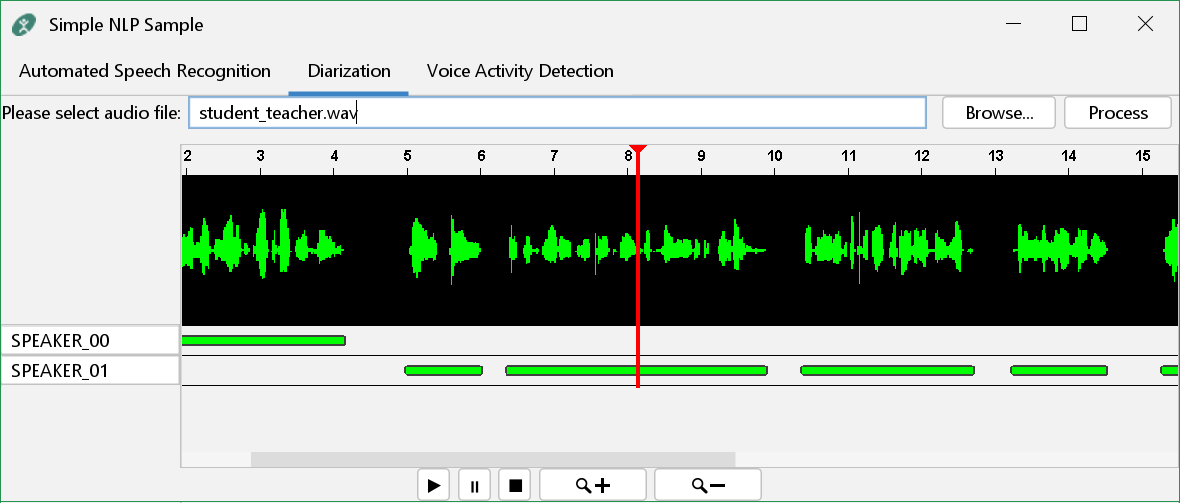 - Media and news outlets. Process audio from podcasts, interviews and videos to create searchable archives. The Speaker Diarization Engine can separate the speakers and the ASR Engine can generate time-stamped text for subtitles or content indexing. High performance and fast processing of the ASR Engine enable the generation of captions for events, broadcasts, or online meetings.