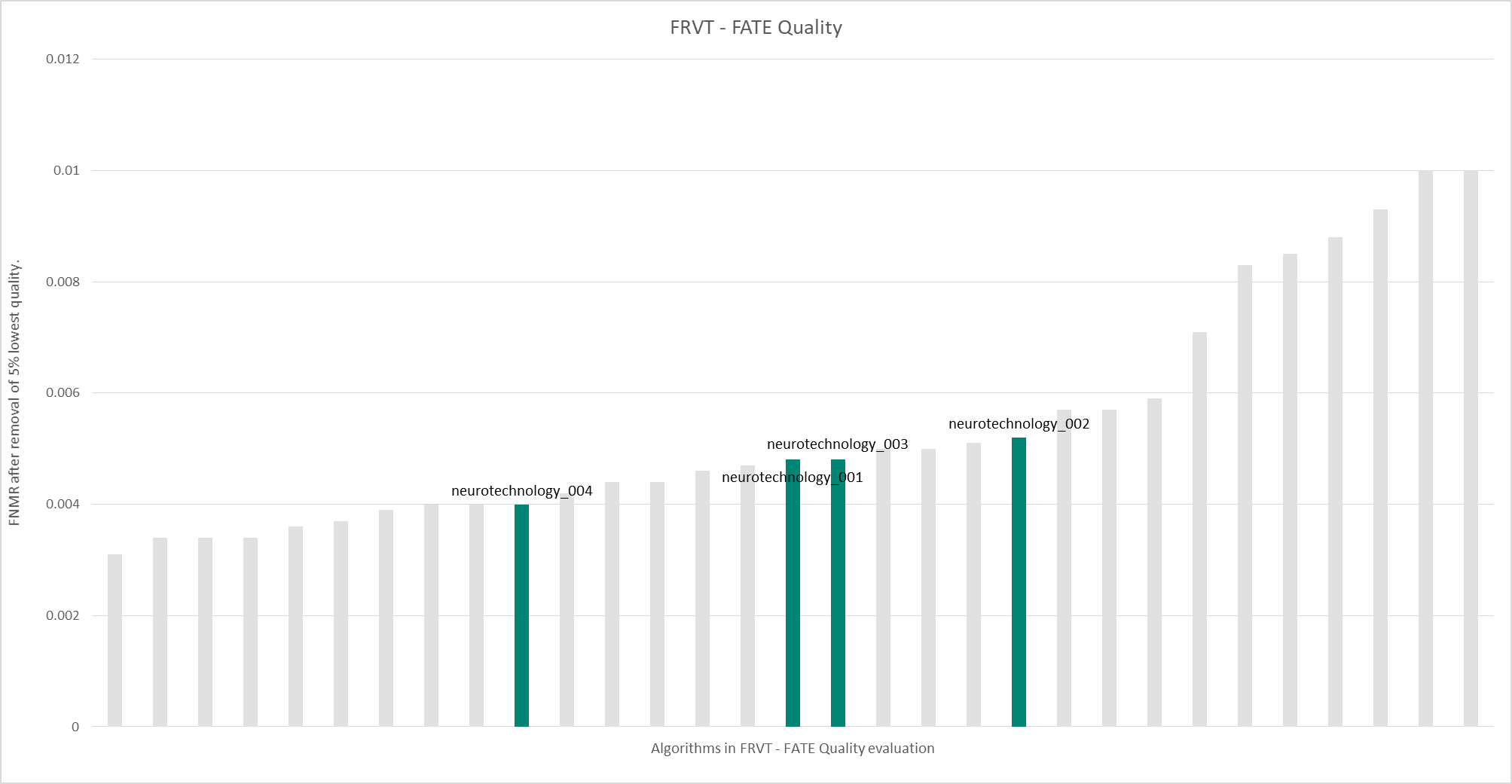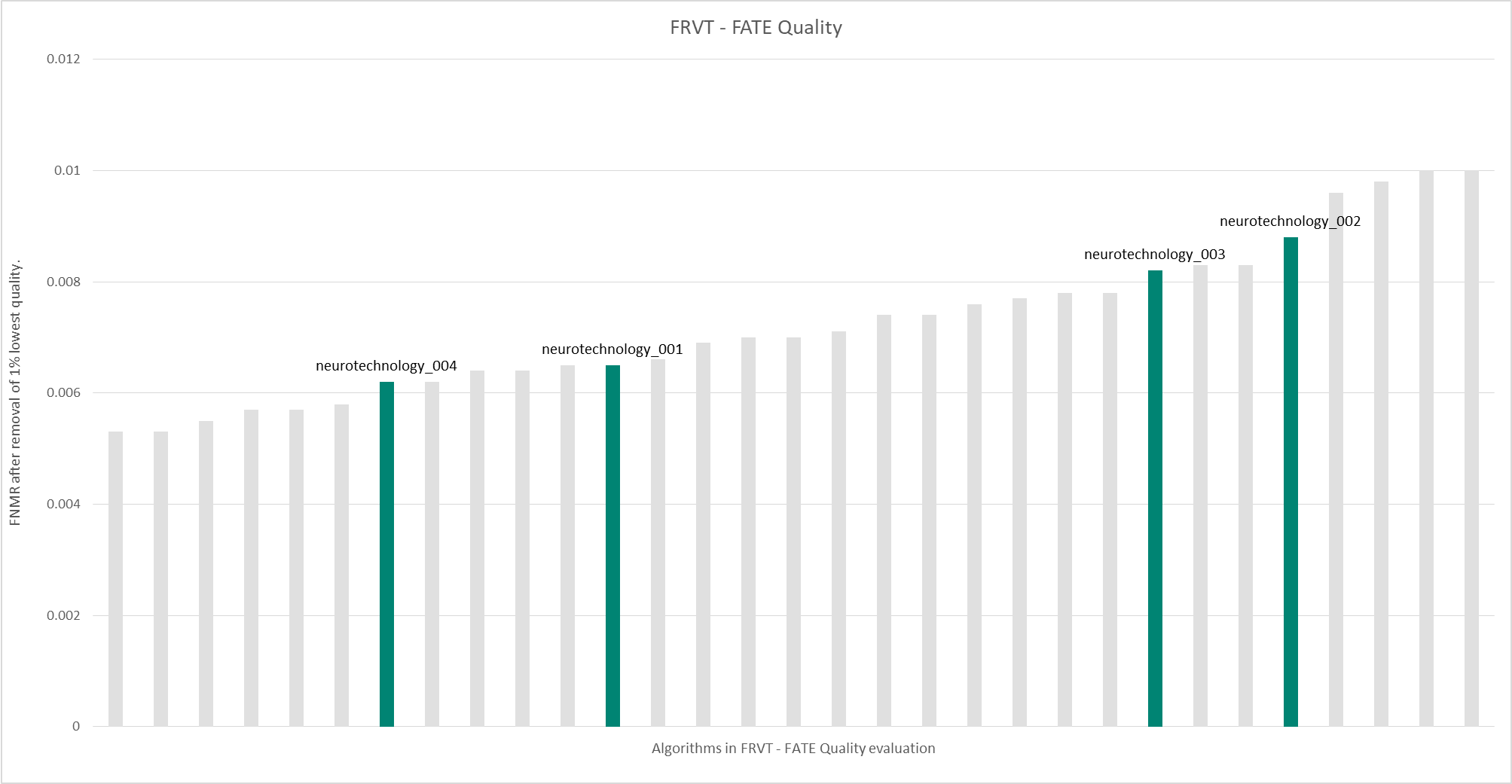 - 0.40% FNMR after removal of 5% lowest quality images. The most accurate contender showed 0.31% FNMR.