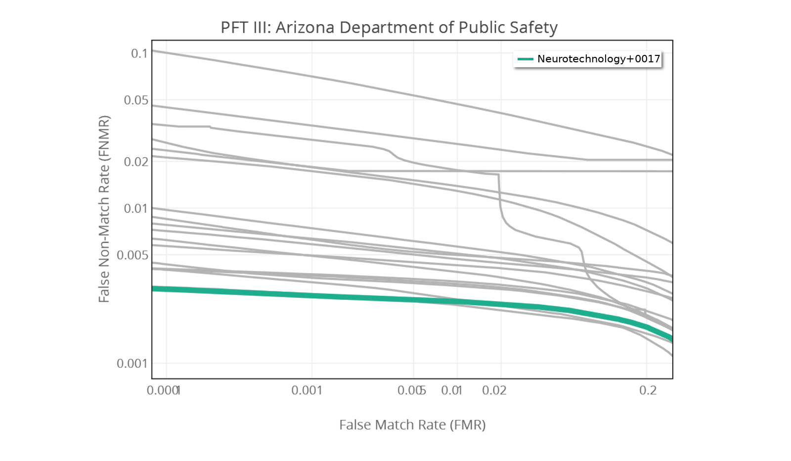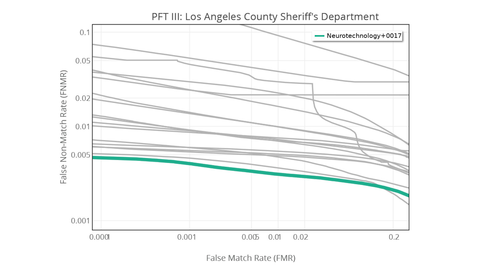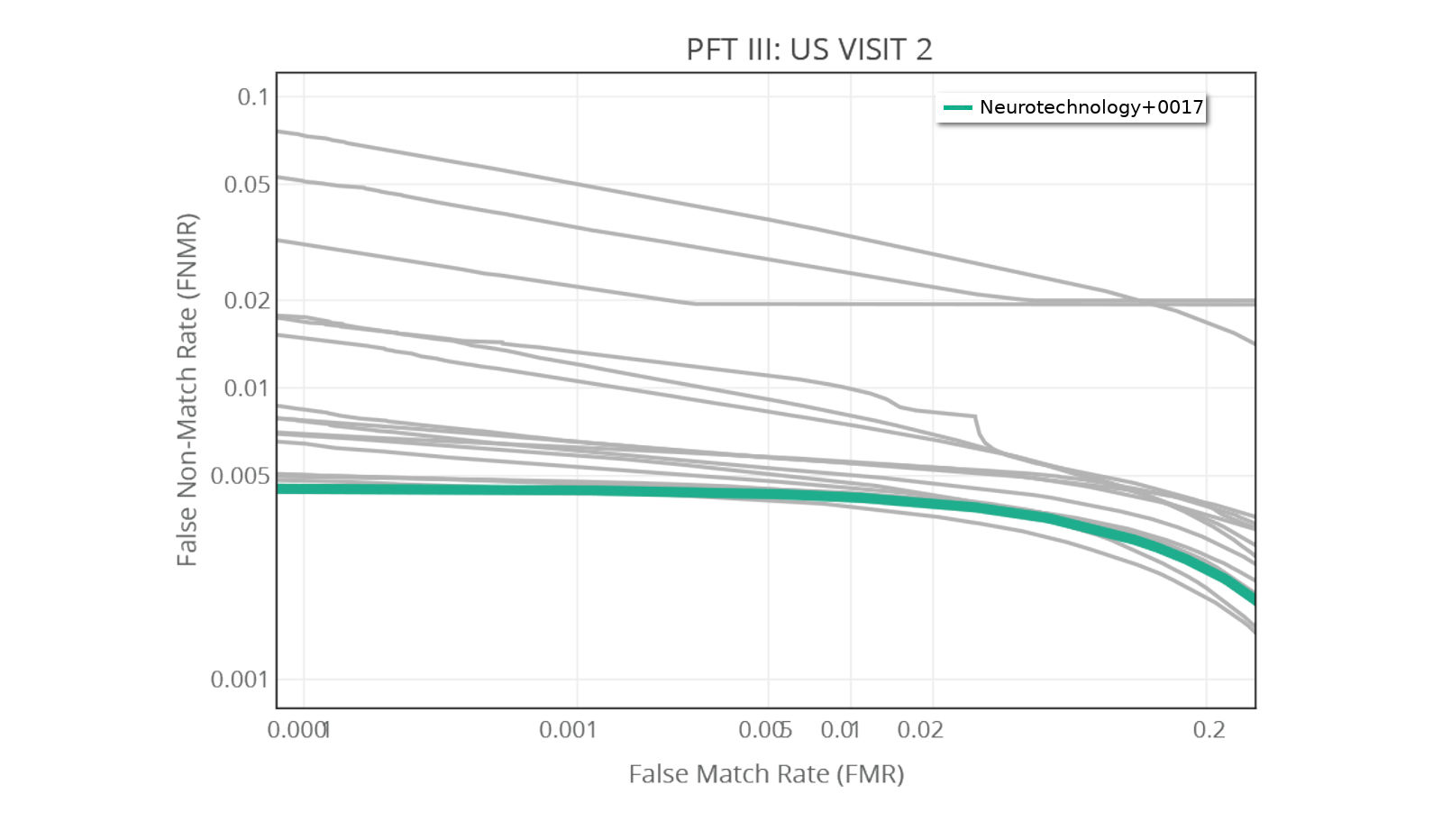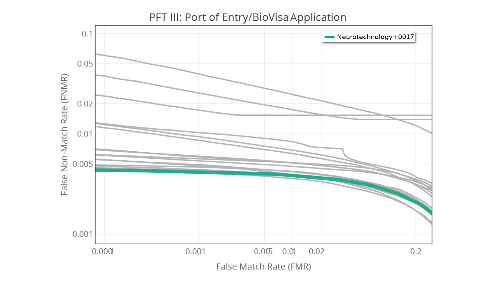 Our latest submission Neurotechnology+0017 (● colored line) is the most accurate algorithm in most of the tests at the PFT III.