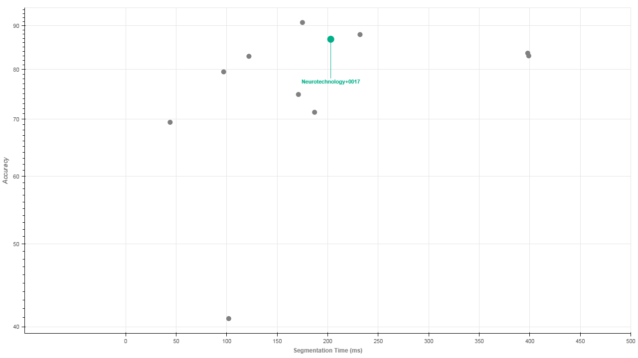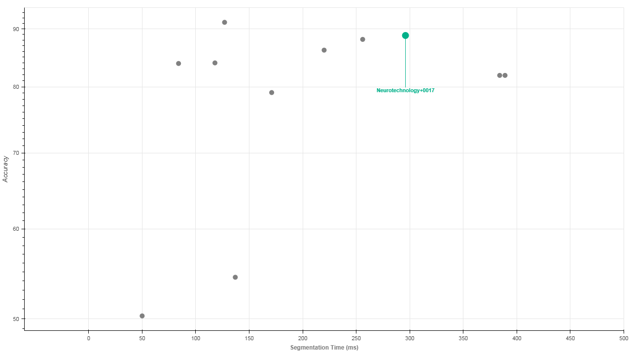 - 296 ms mean combined segmentation time versus 127 ms by the most accurate contender.