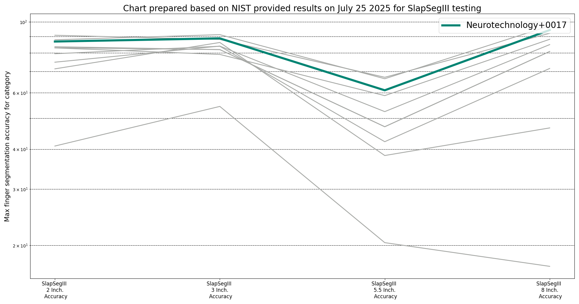 Neurotechnology's slap fingerprint segmentation algorithm showed off as a top performer in the SlapSeg III evaluation, featuring the fastest performance and almost the best accuracy in most categories of the SlapSeg III evaluation.