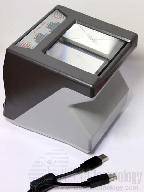 FS64 from Futronic is an optical ten-finger reader which is certified by the FBI as compliant with IQS IAFIS Appendix F. The reader is able to scan four-finger slaps, dual thumbs, as well as single rolled and flat fingerprints.