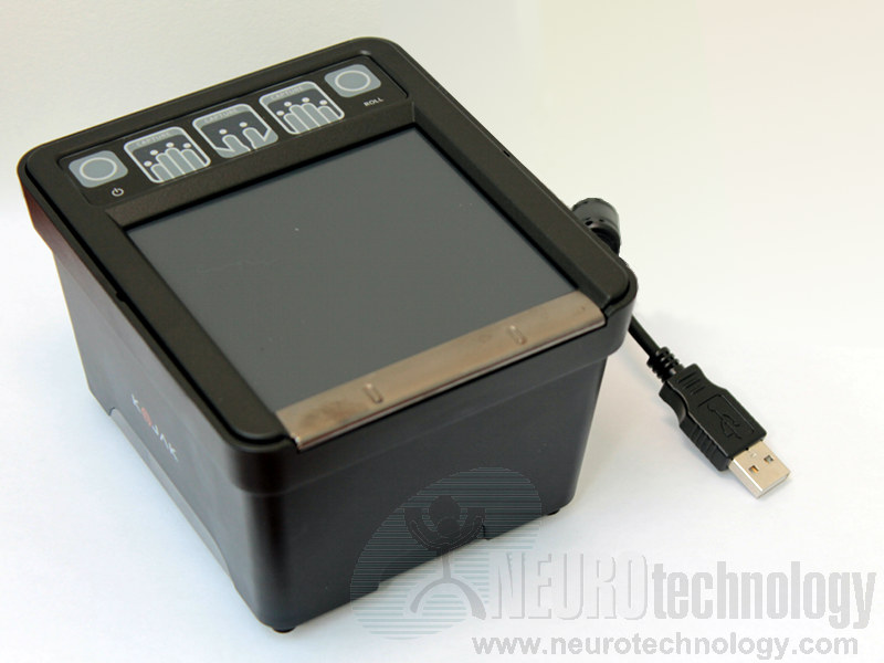 Integrated Biometrics Kojak is an FBI Appendix F FAP 60 certified fingerprint reader. The scanner is able to capture up to four flat fingerprints simultaneously, as well as single rolled fingerprints.