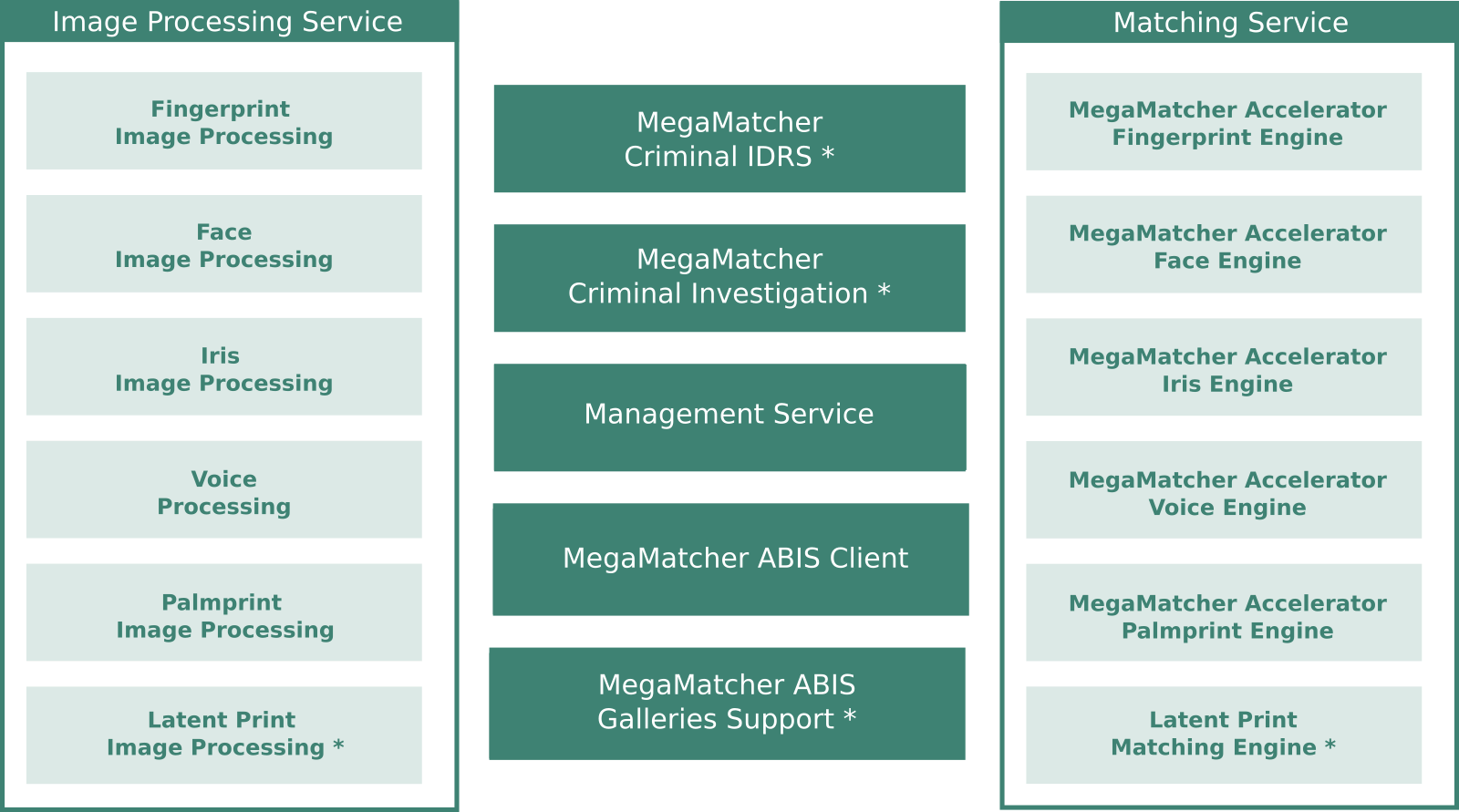 MegaMatcher Automated Biometric Identification System (MegaMatcher ABIS 2025.2) on-premise solution includes a number of components, and each particular component is designed for a specific functionality. A license for an individual MegaMatcher ABIS 2025.2 component is required for each computer or device that runs that component.